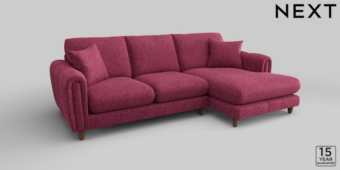 7.2.10 Odella Medium Sofa Chaise - Right Hand Cotswold Chenille Dark Raspberry Pink High Leg - Mid | Made Click here to use our website with more accessibility support, for example screen readers