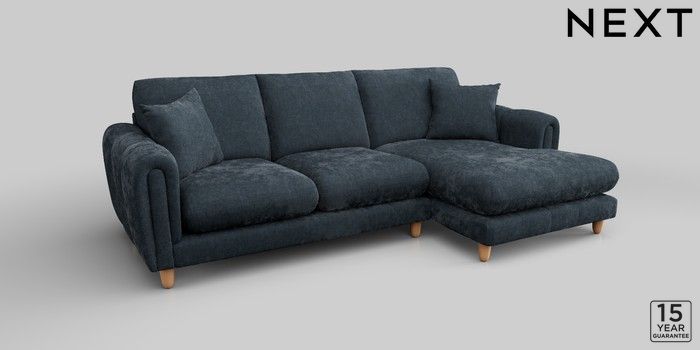 7.2.10 Odella Medium Sofa Chaise - Right Hand Distressed Velour Midnight Blue High Leg - Light | Made Click here to use our website with more accessibility support, for example screen readers