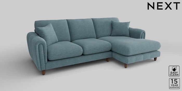 7.2.10 Odella Medium Sofa Chaise - Right Hand Fine Chenille Easy Clean Mid Blue High Leg - Mid | Made Click here to use our website with more accessibility support, for example screen readers
