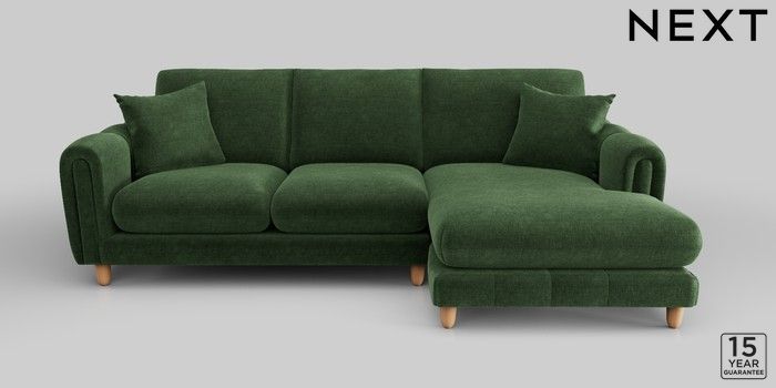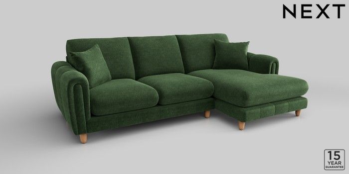 7.2.10 Odella Medium Sofa Chaise - Right Hand Luxe Chenille Dark Green High Leg - Light | Made Click here to use our website with more accessibility support, for example screen readers
