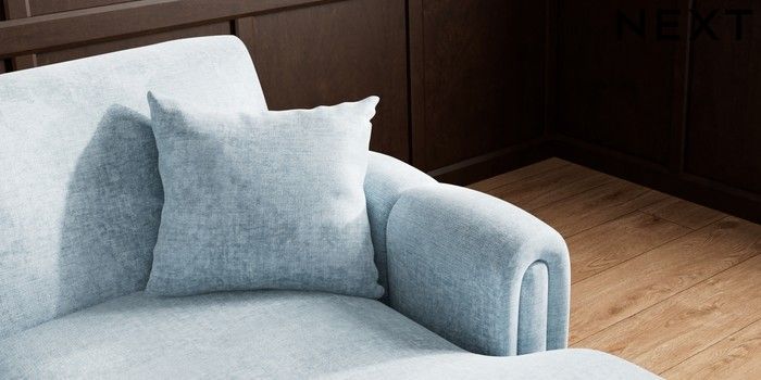 7.2.10 Odella Medium Sofa Chaise - Right Hand Plush Chenille Light Blue High Leg - Light | Made Click here to use our website with more accessibility support, for example screen readers