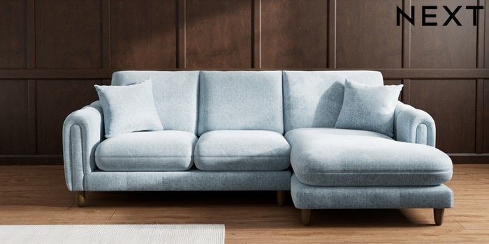 7.2.10 Odella Medium Sofa Chaise - Right Hand Plush Chenille Light Blue High Leg - Mid | Made Click here to use our website with more accessibility support, for example screen readers