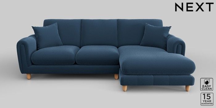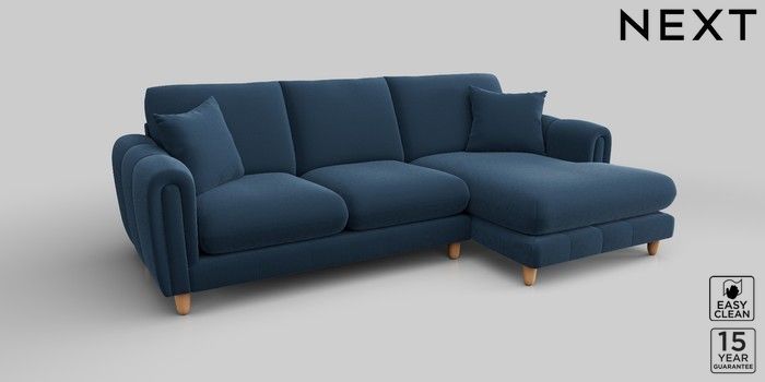 7.2.10 Odella Medium Sofa Chaise - Right Hand Plush Velvet Easy Clean Airforce Blue High Leg - Light | Made Click here to use our website with more accessibility support, for example screen readers