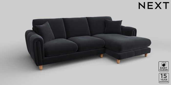 7.2.10 Odella Medium Sofa Chaise - Right Hand Plush Velvet Easy Clean Charcoal Grey High Leg - Light | Made Click here to use our website with more accessibility support, for example screen readers