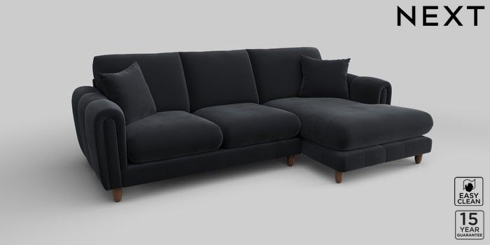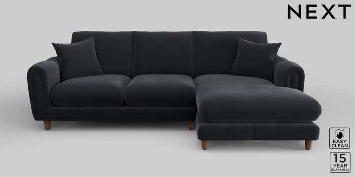 7.2.10 Odella Medium Sofa Chaise - Right Hand Plush Velvet Easy Clean Charcoal Grey High Leg - Mid | Made Click here to use our website with more accessibility support, for example screen readers