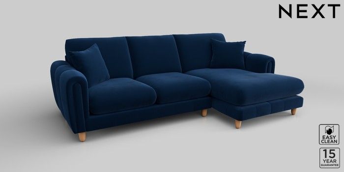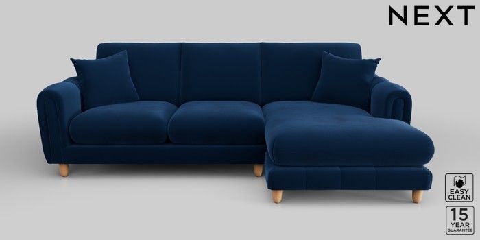 7.2.10 Odella Medium Sofa Chaise - Right Hand Plush Velvet Easy Clean Navy Blue High Leg - Light | Made Click here to use our website with more accessibility support, for example screen readers