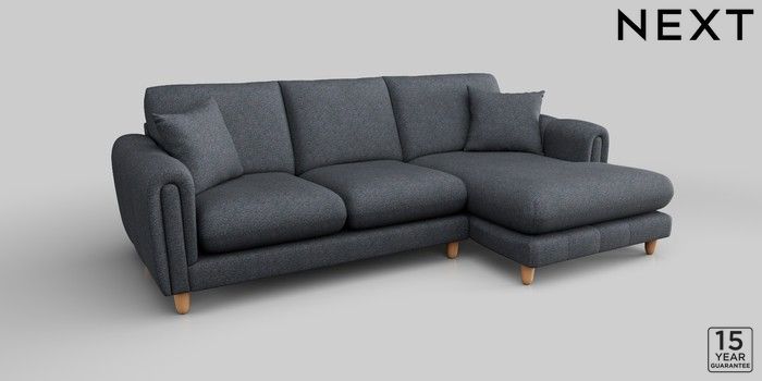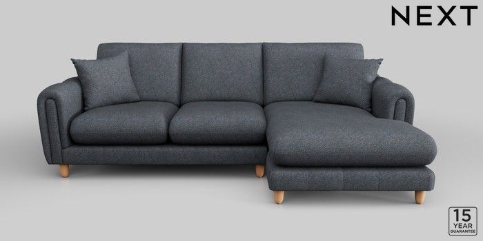7.2.10 Odella Medium Sofa Chaise - Right Hand Tweedy Chenille Navy Blue High Leg - Light | Made Click here to use our website with more accessibility support, for example screen readers