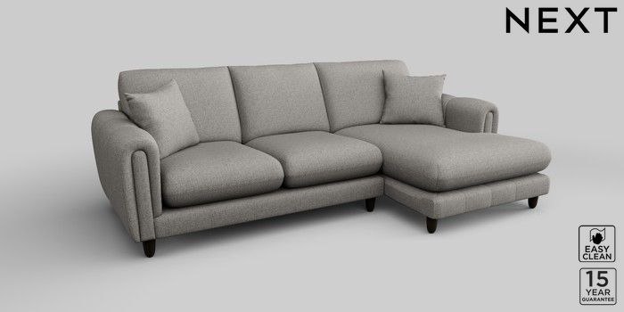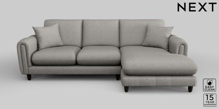 7.2.10 Odella Medium Sofa Chaise - Right Hand Woven Chenille Easy Clean Light Grey High Leg - Dark | Made Click here to use our website with more accessibility support, for example screen readers