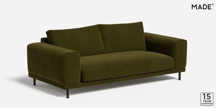 6.12.1 Odin by Made 2 Seater Sofa Matt Velvet Easy Clean Deep Olive Green Skinny - Black | Made Click here to use our website with more accessibility support, for example screen readers