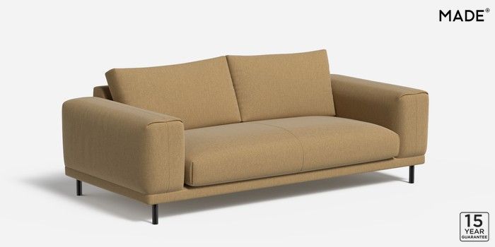 6.12.1 Odin by Made 2 Seater Sofa Textured Slub Weave Caramel Natural Skinny - Black | Made Click here to use our website with more accessibility support, for example screen readers