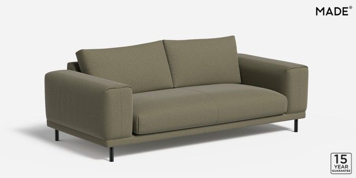 6.12.1 Odin by Made 2 Seater Sofa Textured Slub Weave Soft Olive Green Skinny - Black | Made Click here to use our website with more accessibility support, for example screen readers