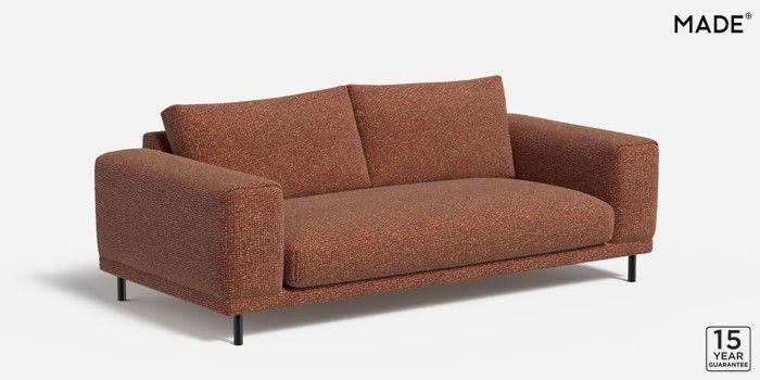 6.12.1 Odin by Made 2 Seater Sofa Tonal Boucle Maroon Red and Light Caramel Skinny - Black | Made Click here to use our website with more accessibility support, for example screen readers