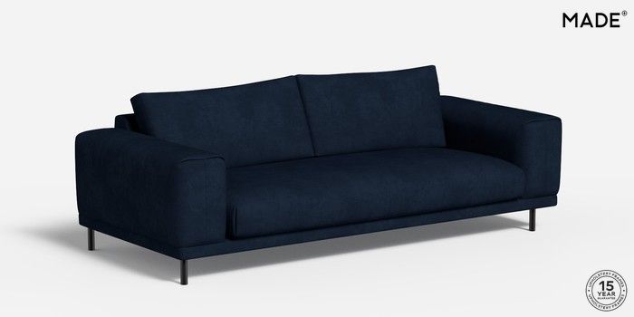 6.12.1 Odin by Made 3 Seater Sofa Matt Velvet Easy Clean Dark Navy Blue Skinny - Black | Made Click here to use our website with more accessibility support, for example screen readers
