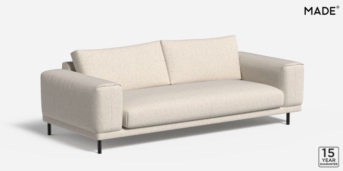 6.12.1 Odin by Made 3 Seater Sofa Textured Slub Weave Light Natural Skinny - Black | Made Click here to use our website with more accessibility support, for example screen readers