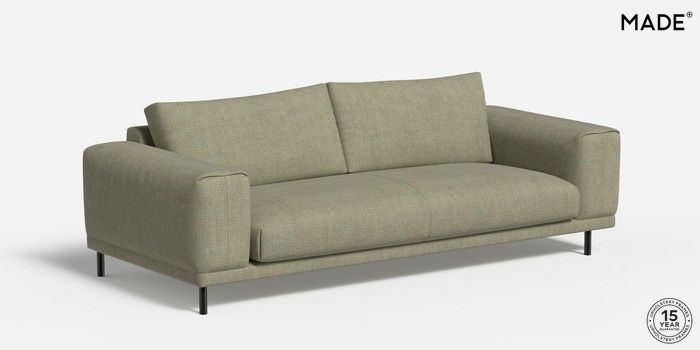 7.2.4 Odin by Made 3 Seater Sofa Woven Fleck Sage Green Skinny - Black | Made Click here to use our website with more accessibility support, for example screen readers