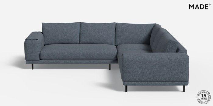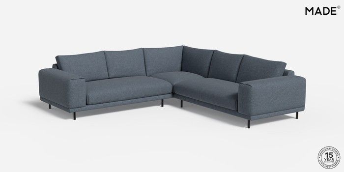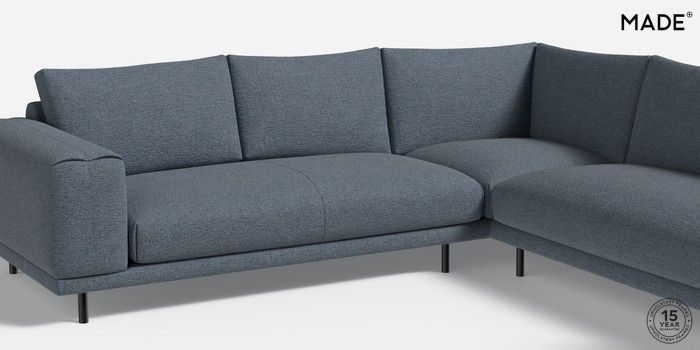 6.12.1 Odin by Made Medium Corner Sofa - Universal Boucle Textured Weave Slate Blue Skinny - Black | Made Click here to use our website with more accessibility support, for example screen readers