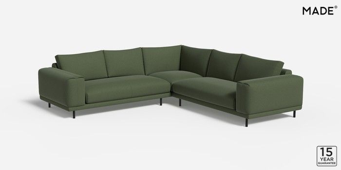6.12.1 Odin by Made Medium Corner Sofa - Universal Made Weave Dark Moss Green Skinny - Black | Made Click here to use our website with more accessibility support, for example screen readers