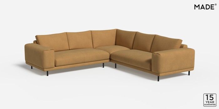6.12.1 Odin by Made Medium Corner Sofa - Universal Matt Velvet Easy Clean Caramel Natural Skinny - Black | Made Click here to use our website with more accessibility support, for example screen readers