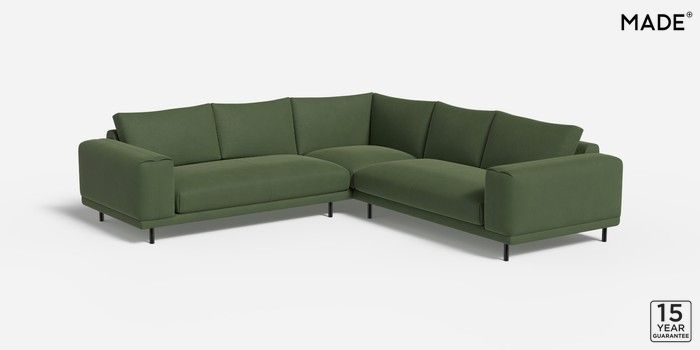 6.12.1 Odin by Made Medium Corner Sofa - Universal Matt Velvet Easy Clean Grass Green Skinny - Black | Made Click here to use our website with more accessibility support, for example screen readers