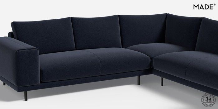 6.12.1 Odin by Made Medium Corner Sofa - Universal Soft Touch Boucle Navy Blue Skinny - Black | Made Click here to use our website with more accessibility support, for example screen readers