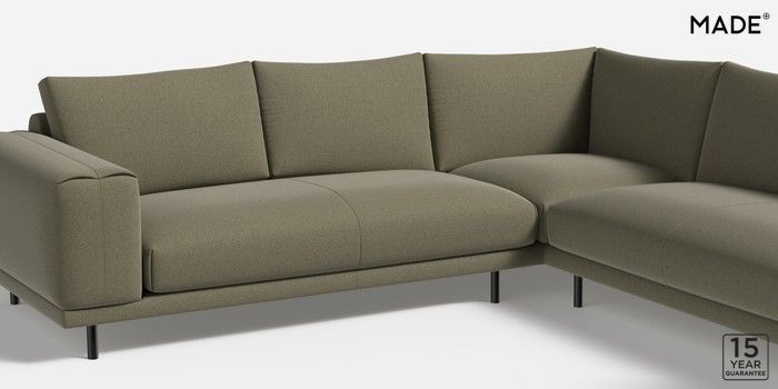 7.0.3 Odin by Made Medium Corner Sofa - Universal Textured Slub Weave Soft Olive Green Skinny - Black | Made Click here to use our website with more accessibility support, for example screen readers