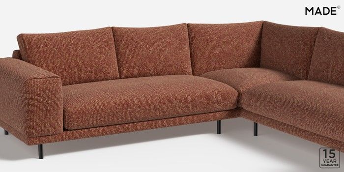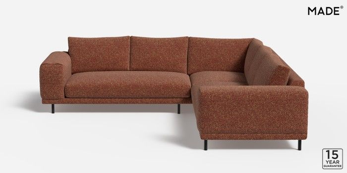 7.0.3 Odin by Made Medium Corner Sofa - Universal Tonal Boucle Maroon Red and Light Caramel Skinny - Black | Made Click here to use our website with more accessibility support, for example screen readers