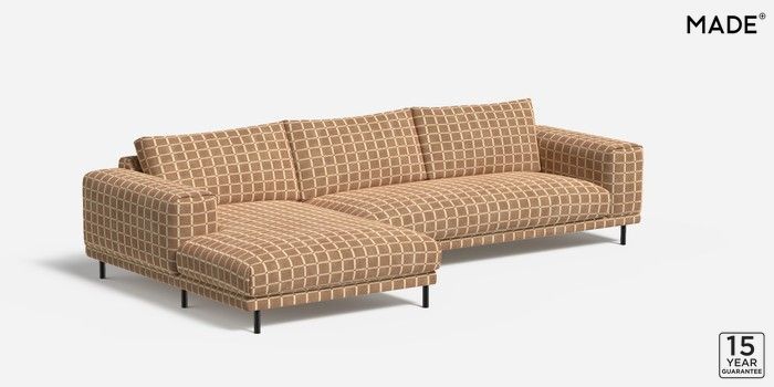 6.12.1 Odin by Made Medium Sofa Chaise - Left Hand Cale Check Dark Sand Natural Skinny - Black | Made Click here to use our website with more accessibility support, for example screen readers