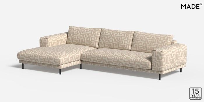 6.12.1 Odin by Made Medium Sofa Chaise - Left Hand Clyde Abstract Light Oatmeal Natural Skinny - Black | Made Click here to use our website with more accessibility support, for example screen readers