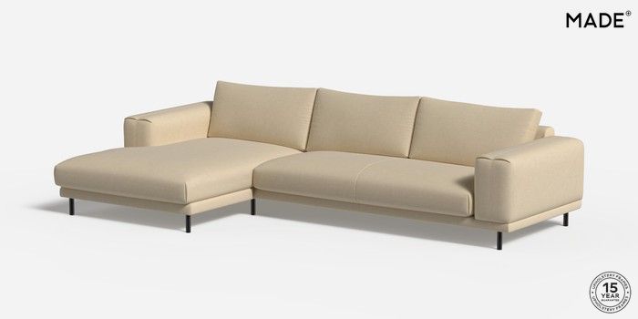 6.12.1 Odin by Made Medium Sofa Chaise - Left Hand Etched Chenille Soft Ecru Natural Skinny - Black | Made Click here to use our website with more accessibility support, for example screen readers
