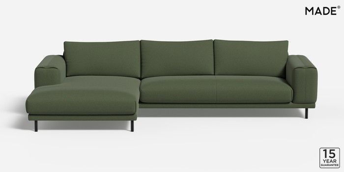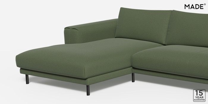 7.0.3 Odin by Made Medium Sofa Chaise - Left Hand Made Weave Dark Moss Green Skinny - Black | Made Click here to use our website with more accessibility support, for example screen readers