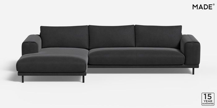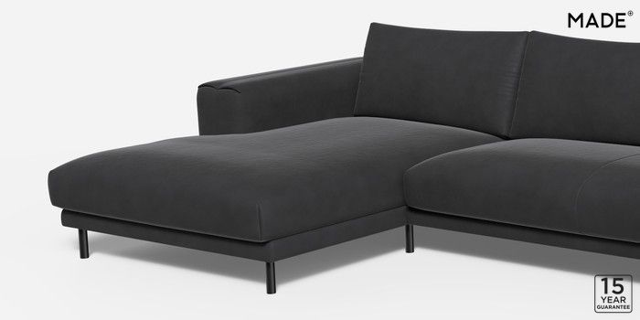 7.0.3 Odin by Made Medium Sofa Chaise - Left Hand Matt Velvet Easy Clean Charcoal Grey Skinny - Black | Made Click here to use our website with more accessibility support, for example screen readers