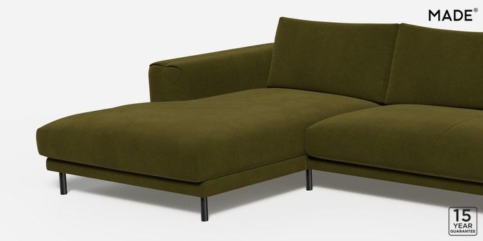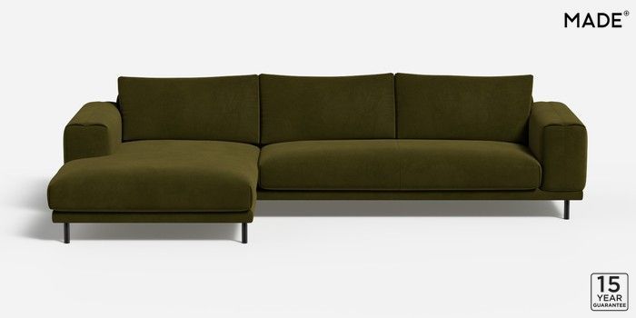 7.2.4 Odin by Made Medium Sofa Chaise - Left Hand Matt Velvet Easy Clean Deep Olive Green Skinny - Black | Made Click here to use our website with more accessibility support, for example screen readers