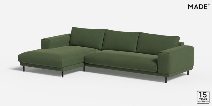 6.12.1 Odin by Made Medium Sofa Chaise - Left Hand Matt Velvet Easy Clean Grass Green Skinny - Black | Made Click here to use our website with more accessibility support, for example screen readers