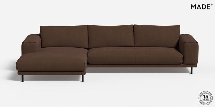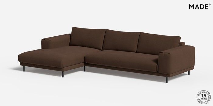 6.12.1 Odin by Made Medium Sofa Chaise - Left Hand Matt Velvet Easy Clean Soft Brown Skinny - Black | Made Click here to use our website with more accessibility support, for example screen readers