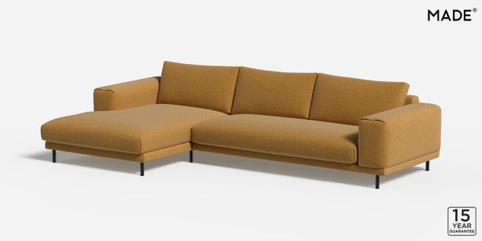6.12.1 Odin by Made Medium Sofa Chaise - Left Hand Soft Touch Boucle Ochre Yellow Skinny - Black | Made Click here to use our website with more accessibility support, for example screen readers