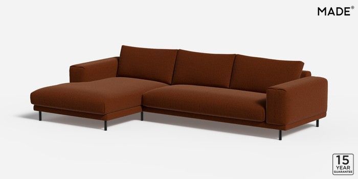 6.12.1 Odin by Made Medium Sofa Chaise - Left Hand Soft Touch Boucle Rust Orange Skinny - Black | Made Click here to use our website with more accessibility support, for example screen readers