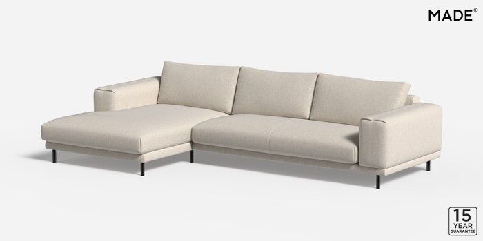 6.12.1 Odin by Made Medium Sofa Chaise - Left Hand Textured Slub Weave Light Natural Skinny - Black | Made Click here to use our website with more accessibility support, for example screen readers
