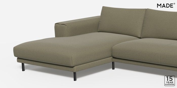 7.0.3 Odin by Made Medium Sofa Chaise - Left Hand Textured Slub Weave Soft Olive Green Skinny - Black | Made Click here to use our website with more accessibility support, for example screen readers
