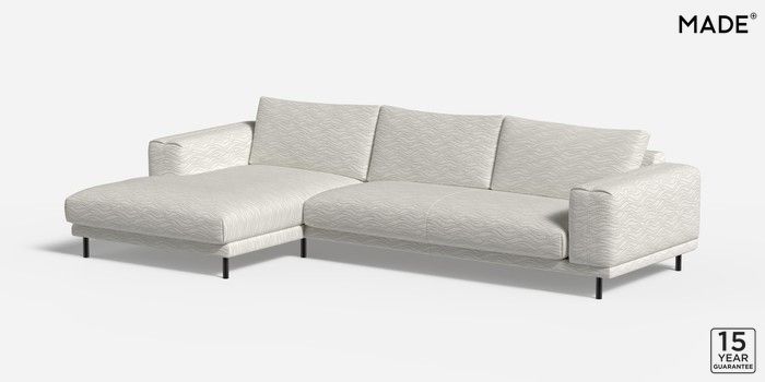 6.12.1 Odin by Made Medium Sofa Chaise - Left Hand Textured Wave Boucle Soft White Skinny - Black | Made Click here to use our website with more accessibility support, for example screen readers