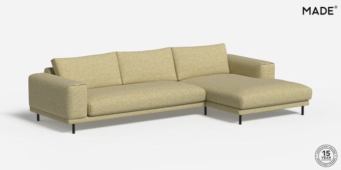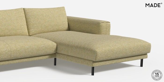 6.12.1 Odin by Made Medium Sofa Chaise - Right Hand Boucle Textured Weave Pale Fir Green Skinny - Black | Made Click here to use our website with more accessibility support, for example screen readers