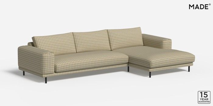 6.12.1 Odin by Made Medium Sofa Chaise - Right Hand Declan Check Natural and Black Skinny - Black | Made Click here to use our website with more accessibility support, for example screen readers
