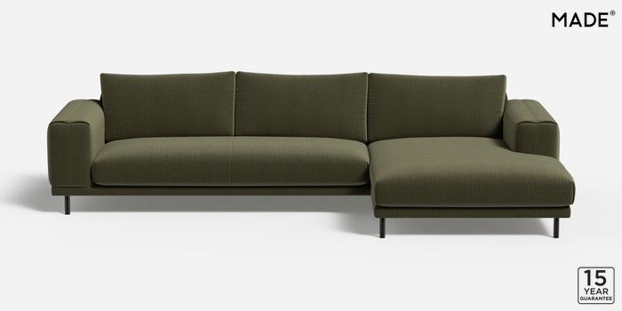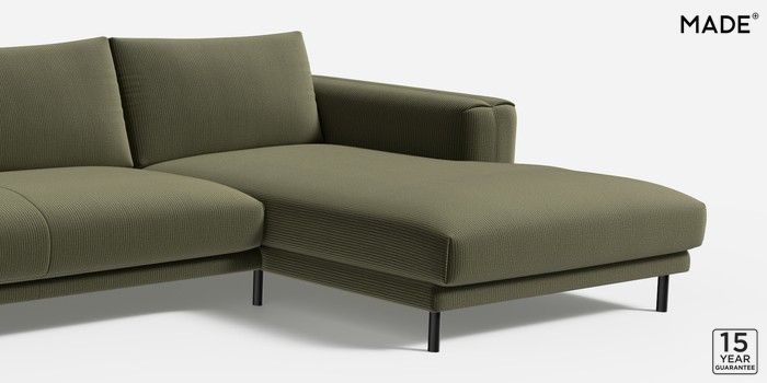 7.0.3 Odin by Made Medium Sofa Chaise - Right Hand Matt Corduroy Fennel Green Skinny - Black | Made Click here to use our website with more accessibility support, for example screen readers