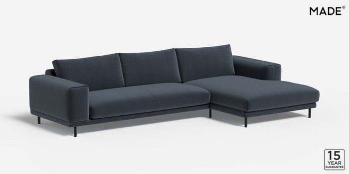 6.12.1 Odin by Made Medium Sofa Chaise - Right Hand Matt Corduroy Midnight Blue Skinny - Black | Made Click here to use our website with more accessibility support, for example screen readers