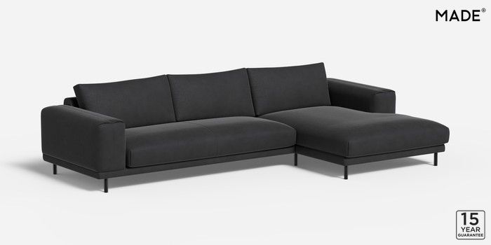 6.12.1 Odin by Made Medium Sofa Chaise - Right Hand Matt Velvet Easy Clean Charcoal Grey Skinny - Black | Made Click here to use our website with more accessibility support, for example screen readers