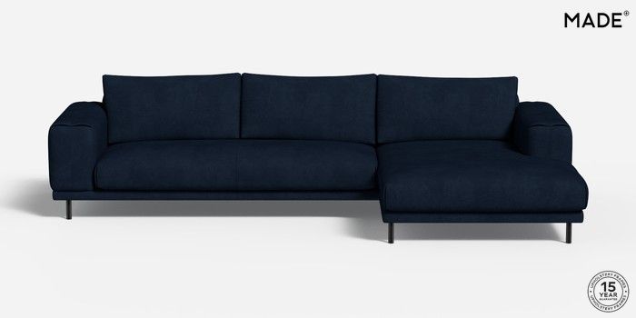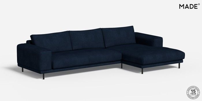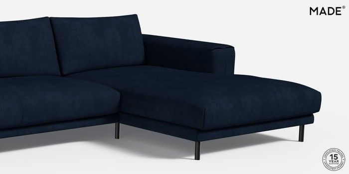 6.12.1 Odin by Made Medium Sofa Chaise - Right Hand Matt Velvet Easy Clean Dark Navy Blue Skinny - Black | Made Click here to use our website with more accessibility support, for example screen readers