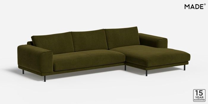 6.12.1 Odin by Made Medium Sofa Chaise - Right Hand Matt Velvet Easy Clean Deep Olive Green Skinny - Black | Made Click here to use our website with more accessibility support, for example screen readers