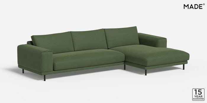 6.12.1 Odin by Made Medium Sofa Chaise - Right Hand Matt Velvet Easy Clean Grass Green Skinny - Black | Made Click here to use our website with more accessibility support, for example screen readers