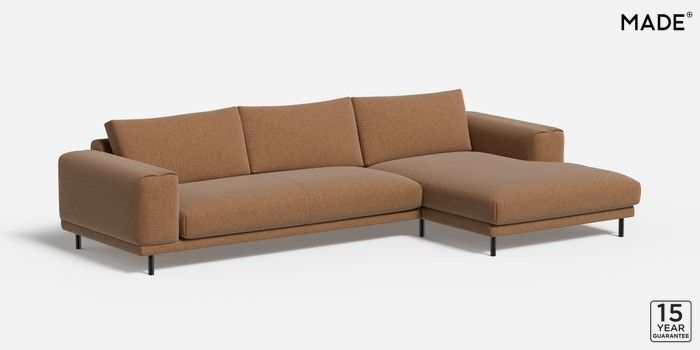6.12.1 Odin by Made Medium Sofa Chaise - Right Hand Soft Touch Boucle Caramel Natural Skinny - Black | Made Click here to use our website with more accessibility support, for example screen readers