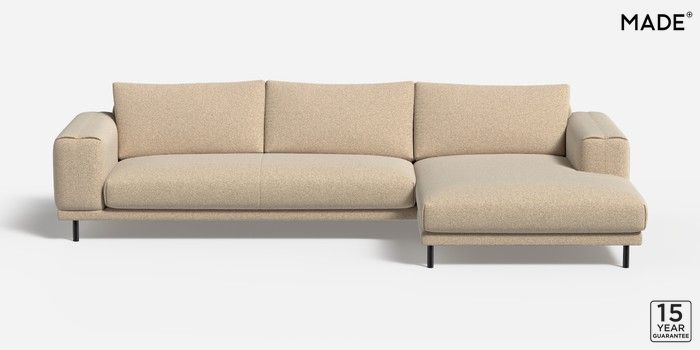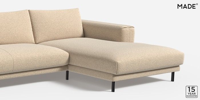 7.0.3 Odin by Made Medium Sofa Chaise - Right Hand Soft Touch Boucle Natural Linen Skinny - Black | Made Click here to use our website with more accessibility support, for example screen readers