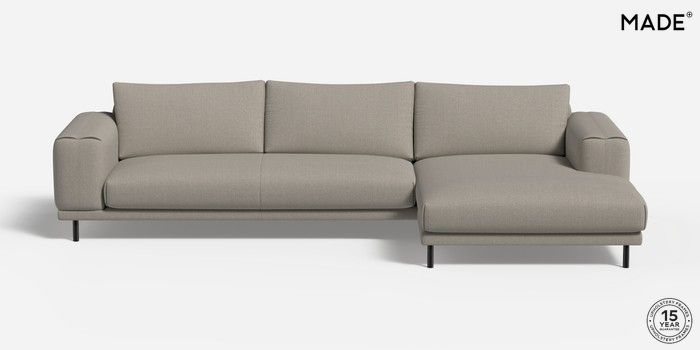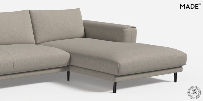6.12.1 Odin by Made Medium Sofa Chaise - Right Hand Textured Slub Weave Pumice Grey Skinny - Black | Made Click here to use our website with more accessibility support, for example screen readers